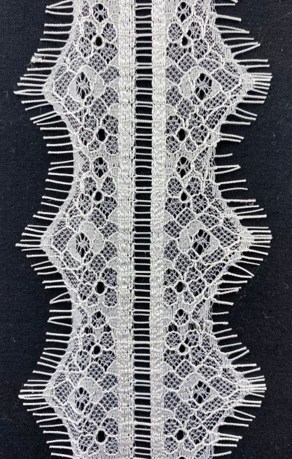 Kasar işlemi uygulanmış, mat polyesterden üretilmiş 30 cm genişliğinde bohrer desenli brode bant.