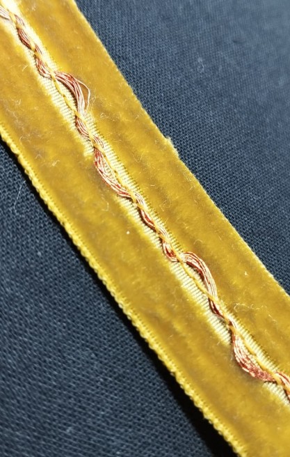Lacivert renkte pullarla süslenmiş ithal bant. Şık projeler için uygundur.