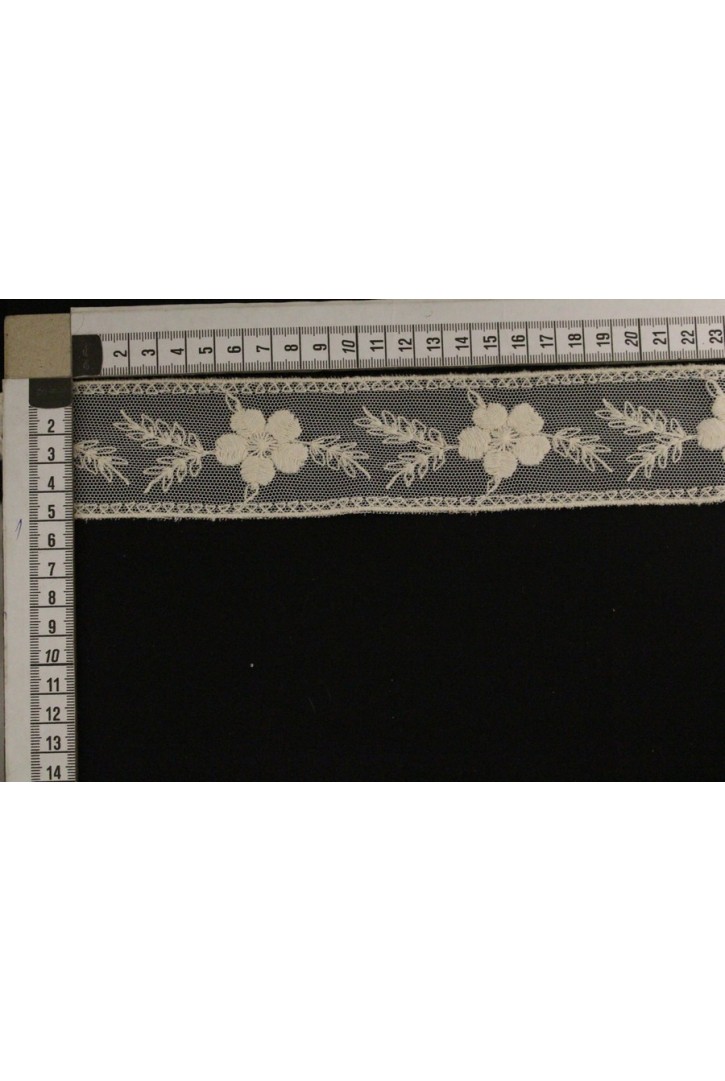 4 cm genişliğinde, ham mat polyester güpür brode bant. Zarif ve doğal tasarımlar için mükemmel bir t..