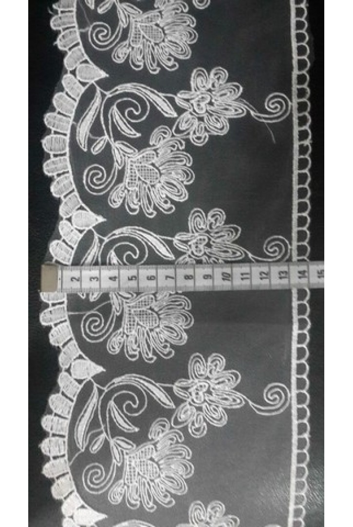Dayanıklı yapıya sahip 7,5 cm genişliğinde ithal mat ham güpür brode bant...