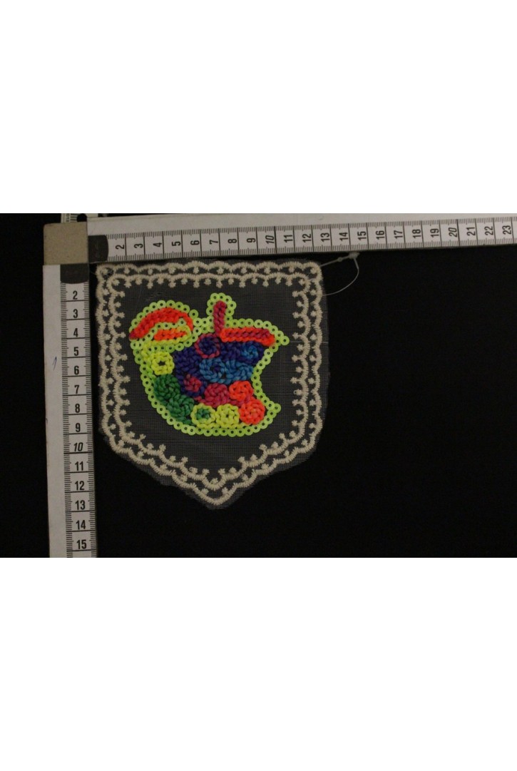 10 cm genişliğinde, pembe zemin üzerinde siyah motifli gülen yüz aplik...