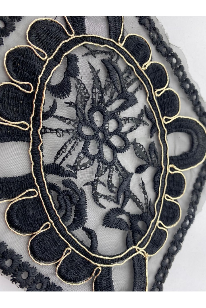 8 cm genişliğinde siyah mat polyester güpür brode bant. Zarif projelerde tercih edilir...