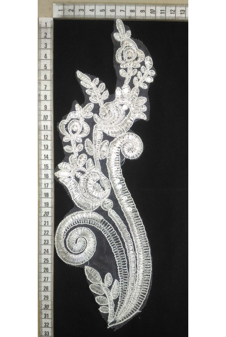 Beyaz renkte, mat polyester dokulu güpür brode bant. Zarif projelerde kullanılabilir...