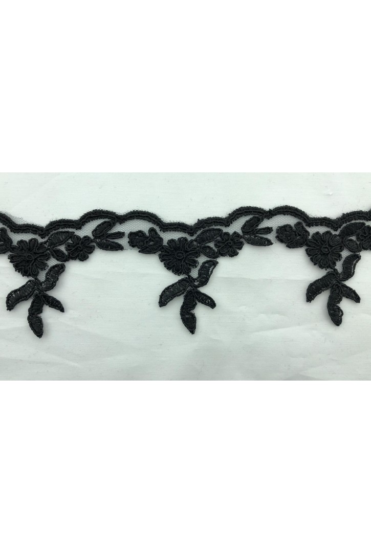 Yerli siyah renkli kordlu sakallı yapıdaki naylon dantel bant...