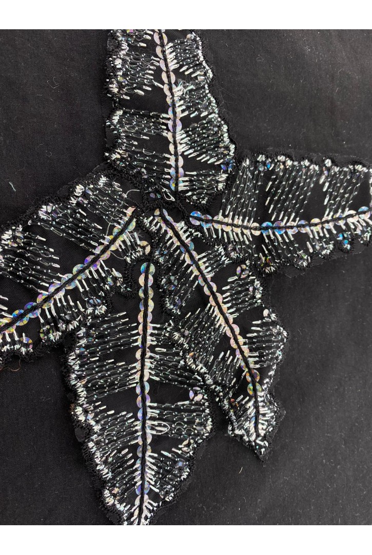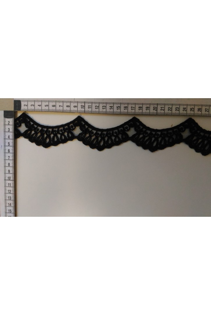 Siyah Kordlu Aplik Polyester Brode