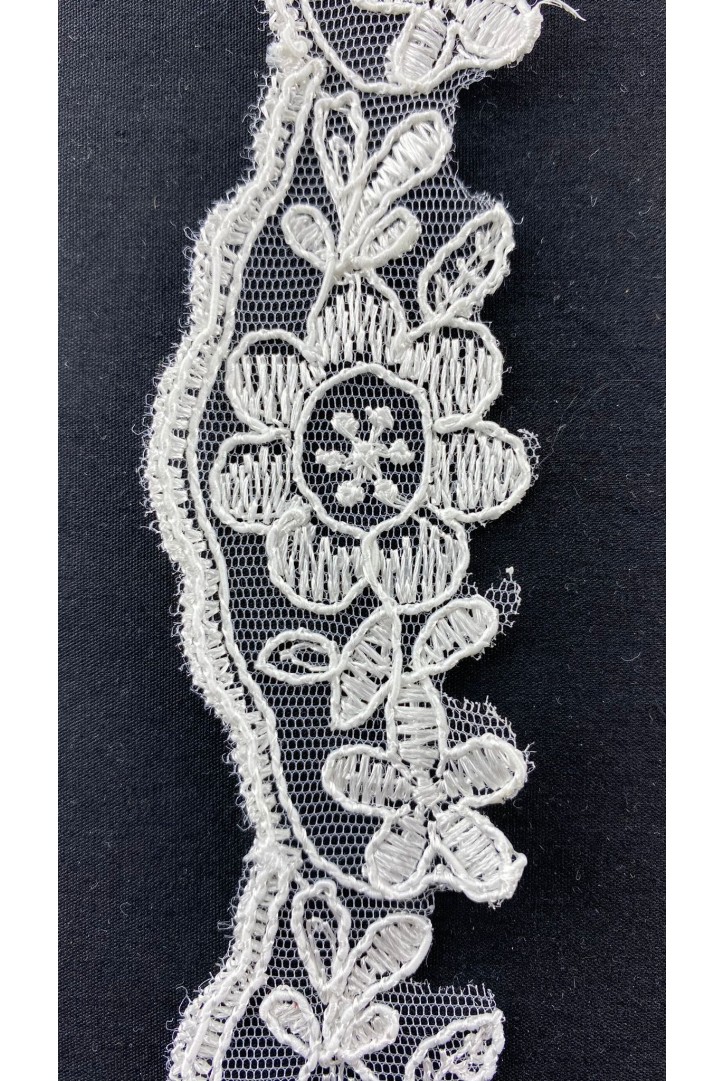 Krem renkte tül üzerine işlenmiş brode bant. Genişliğiyle zarif detaylar için uygundur...