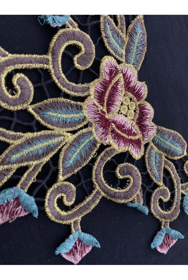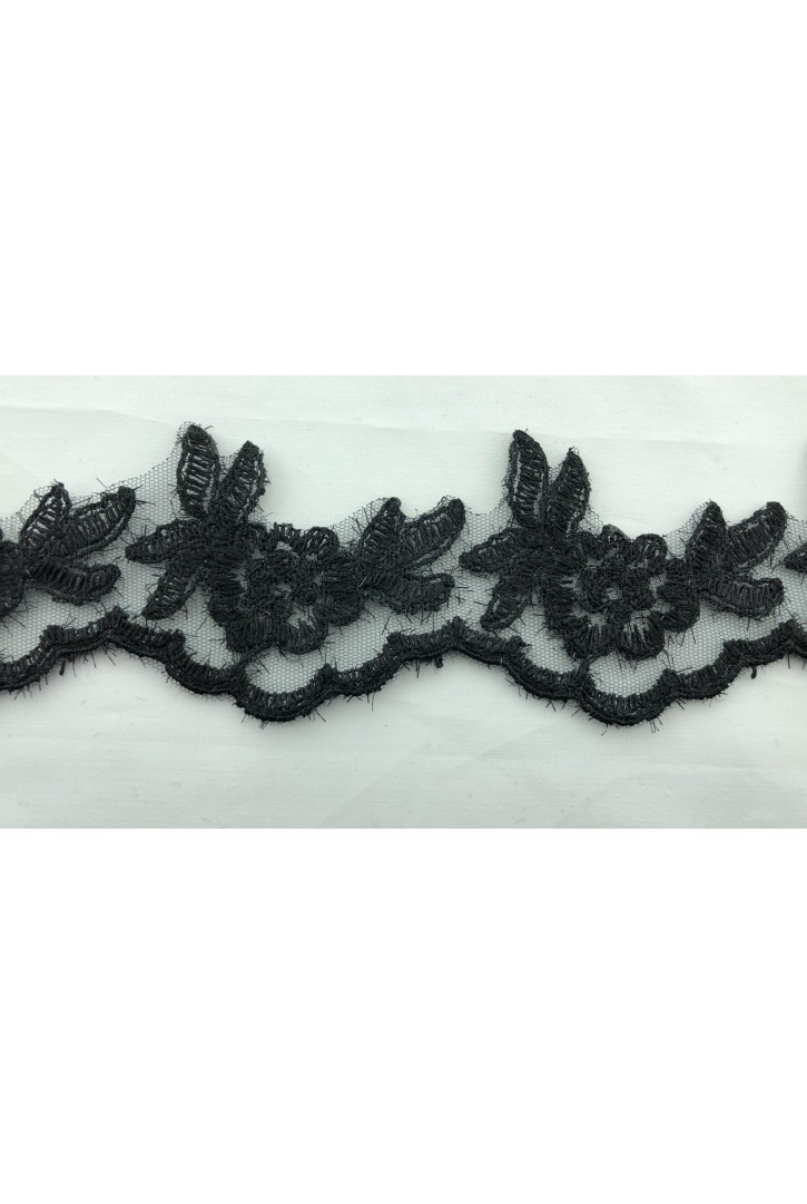 21 cm genişliğinde siyah vual brode bant, dekoratif projelere zarafet katar...