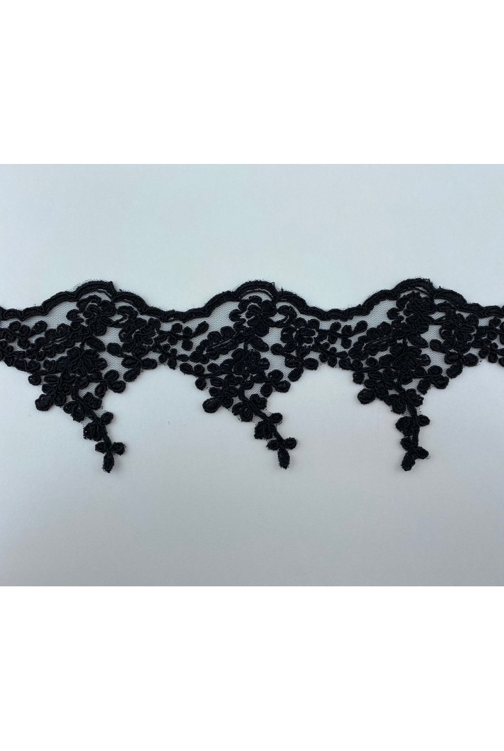 Siyah Sakallı Flok Dantel, Naylon