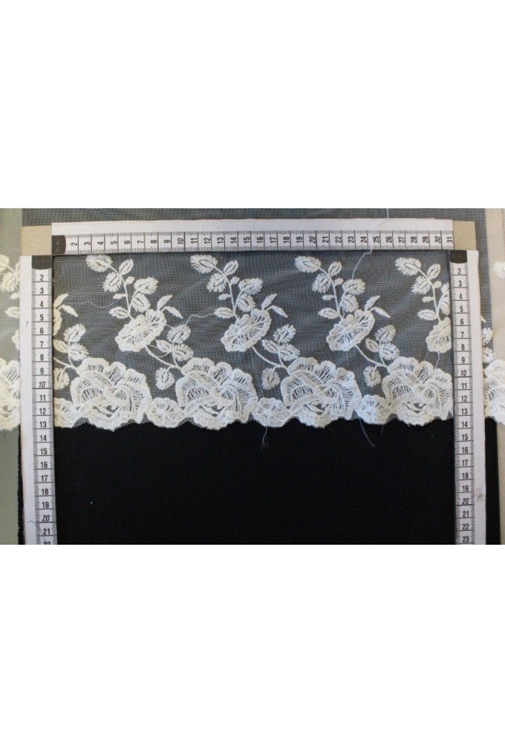 Ekru Renk Tül Üzeri Brode Bant, Yerli Üretim