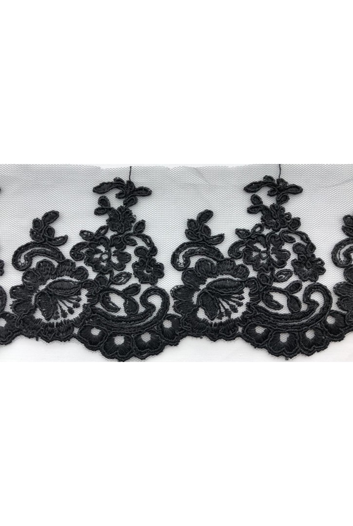 Sakallı dokusuyla dikkat çeken, siyah renkte ithal naylon dantel bant...