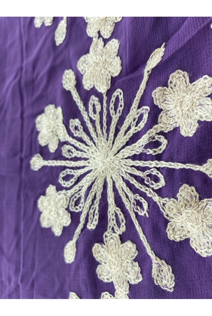 Lila zemin üzerine çiçek desenli, 150 cm genişliğinde viskon kumaş. Hafif ve zarif yapısıyla dikkat ..