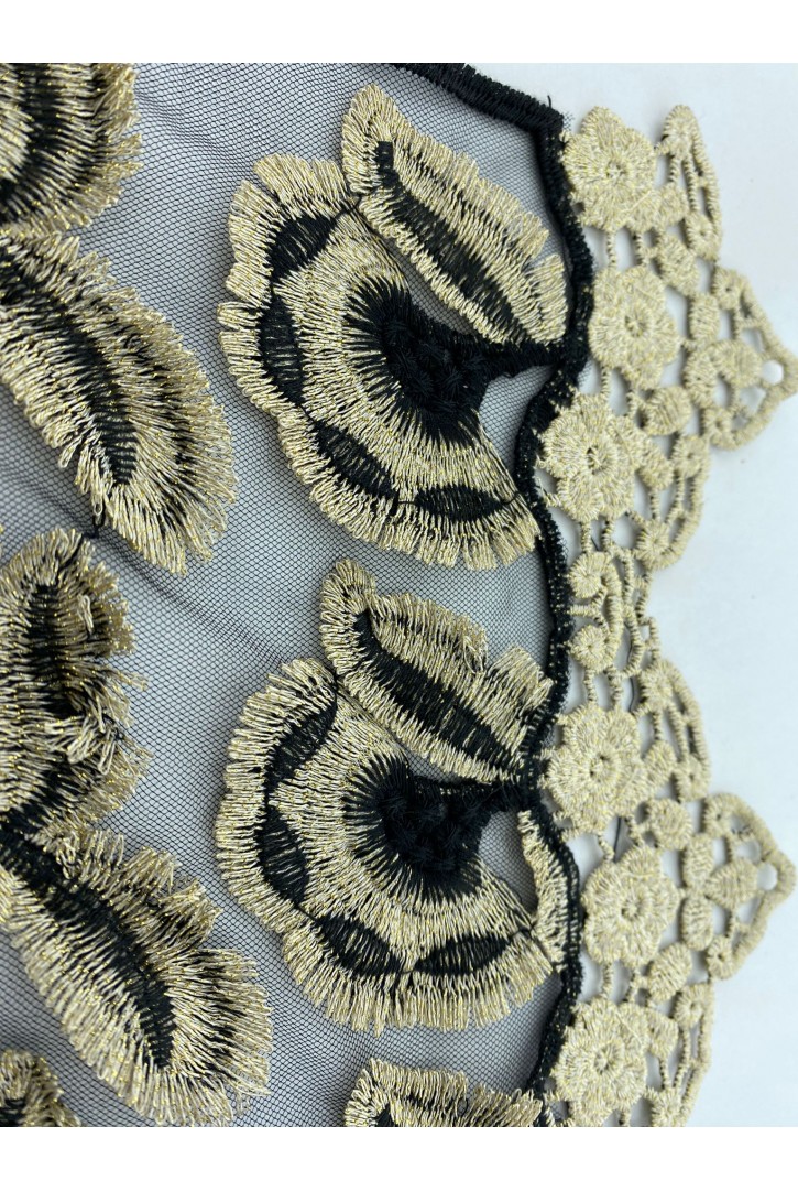 Siyah zemin üzerinde bej flok baskılı tül, zarif projelere hareket katar...