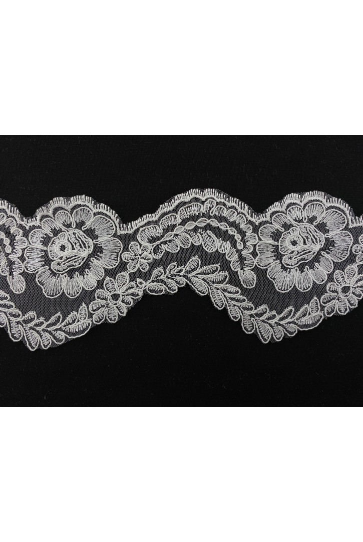 140 cm genişliğinde, siyah flok baskılı yerli polyester tül kumaş...