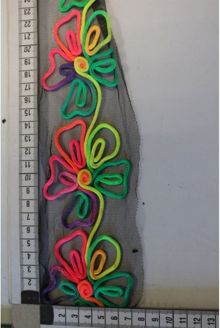 Siyah zeminli, 150 cm genişliğinde ithal renkli nakışlı şifon kumaş...