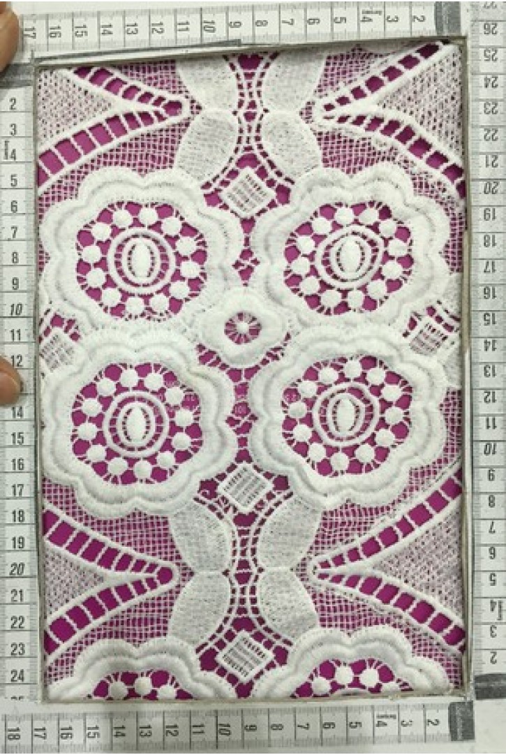 Dayanıklı yapısıyla dikkat çeken, fikse işlemiyle güçlendirilmiş ham polyester dantel kumaş...
