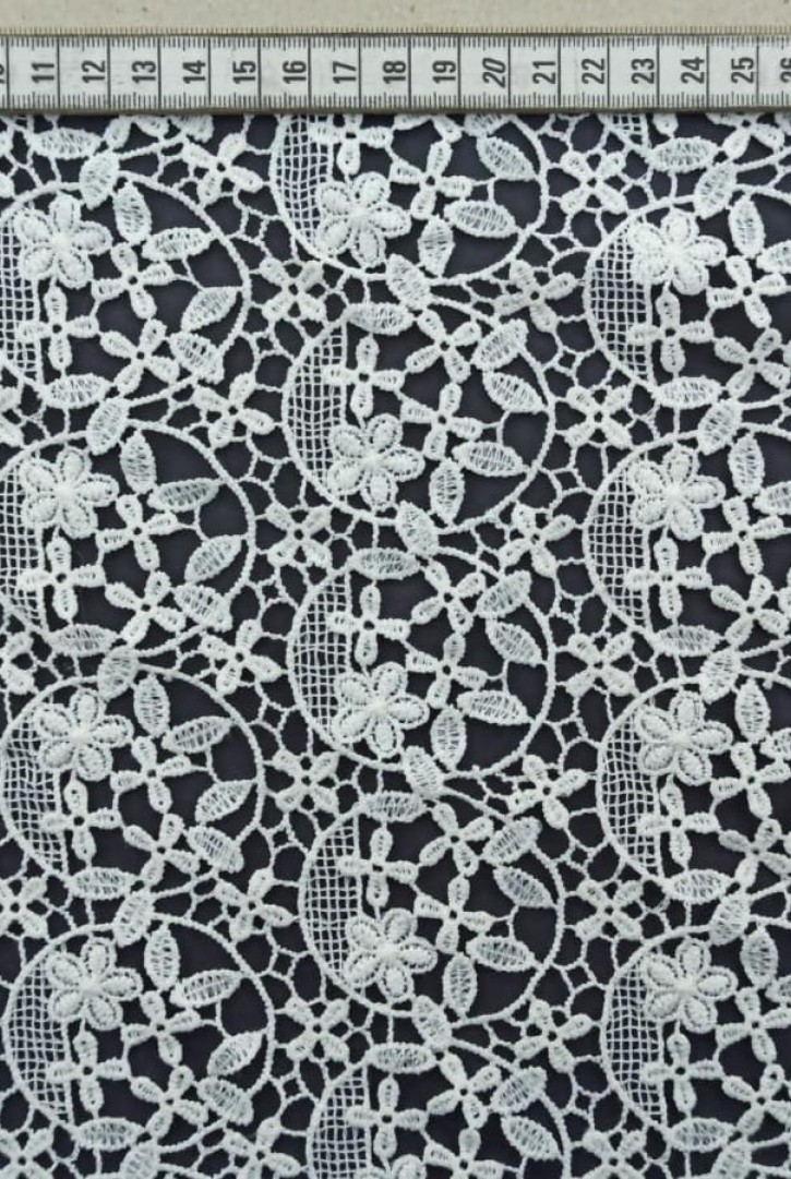 Siyah-beyaz renklerde, mat polyester tül üzerine işlenmiş yerli brode kumaş...