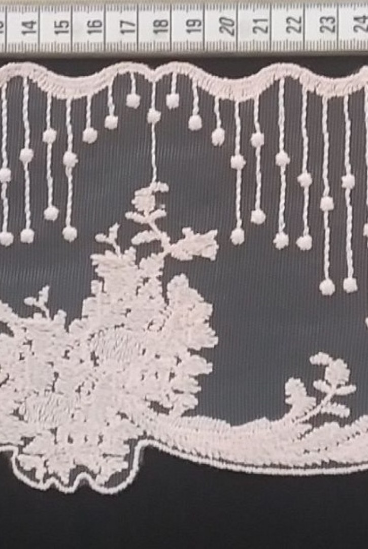 7 cm genişliğindeki pamuk tül üzeri brode bant, geniş süslemelerde ideal bir tercihtir...