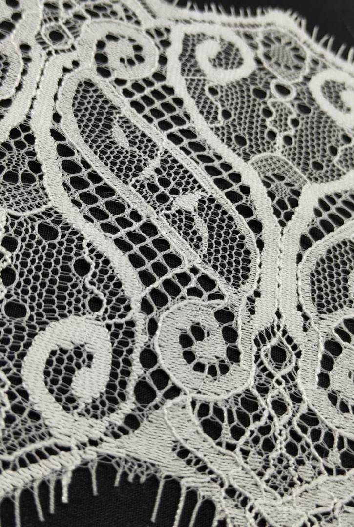 Sakallı dokusuyla dikkat çeken naylon dantel, fikseli yapısıyla esnek projelere uygundur.-3608 DANTE..