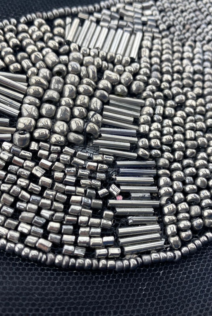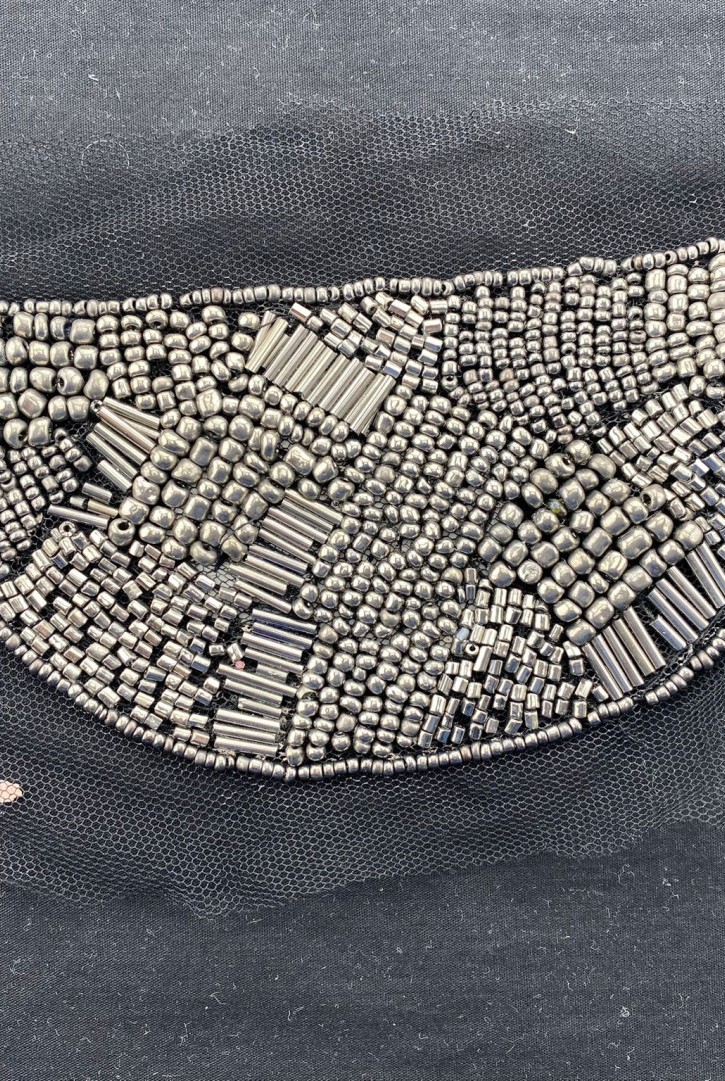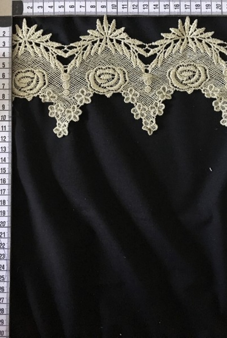 Siyah tül üzeri, şık gold sim detaylı ithal brode aplik.-7069 BRODE APLİK POLYESTER TÜL ÜZERİ İTHAL ..