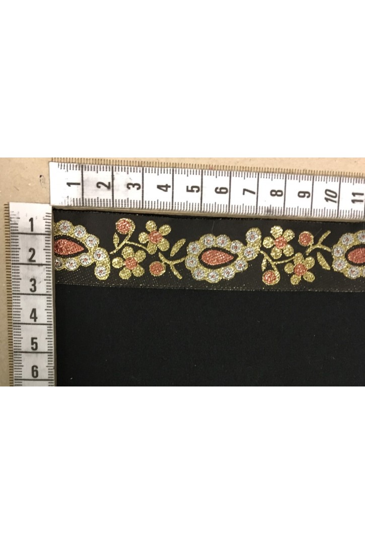 Pamuk-polyester karışımı siyah vual brode bant, zarif bir doku ve tasarım detayı sunar.-15395 BRODE ..