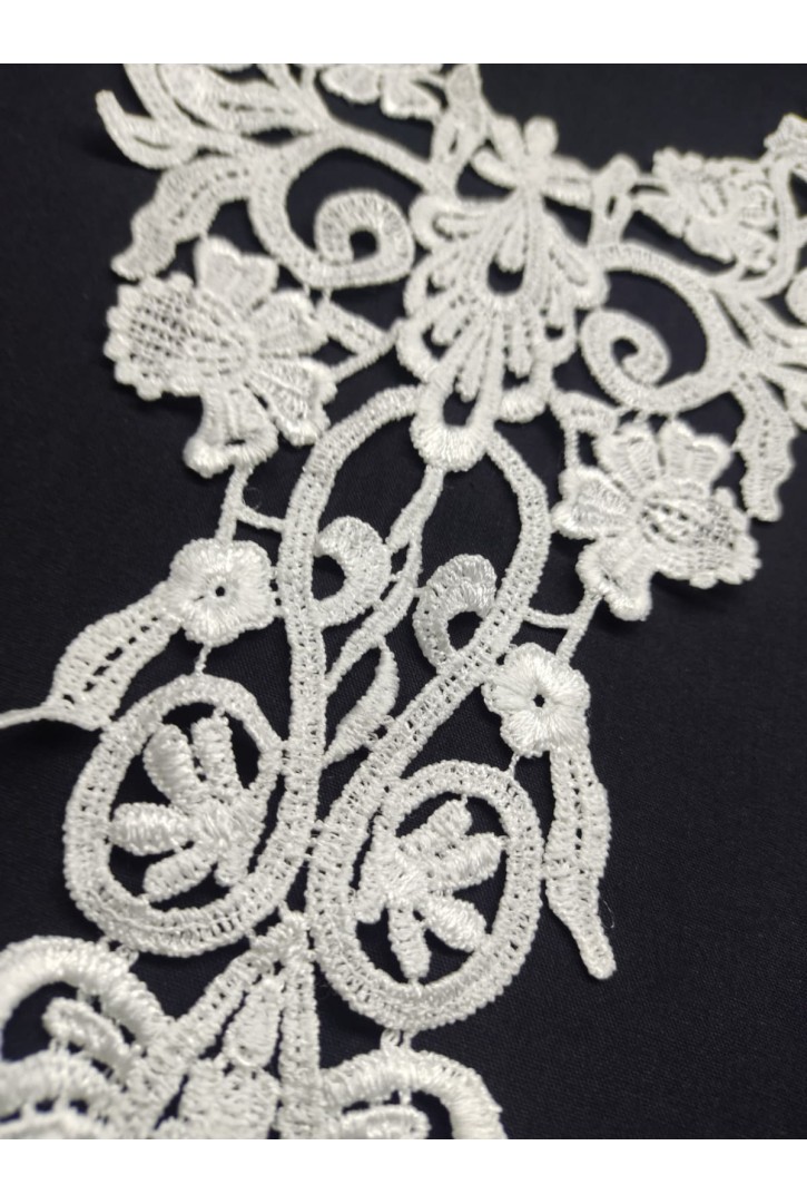 Beyaz renkte mat polyester güpür brode bant. Şık projelerde zarif bir dokunuş sağlar.-8037 BRODE YER..