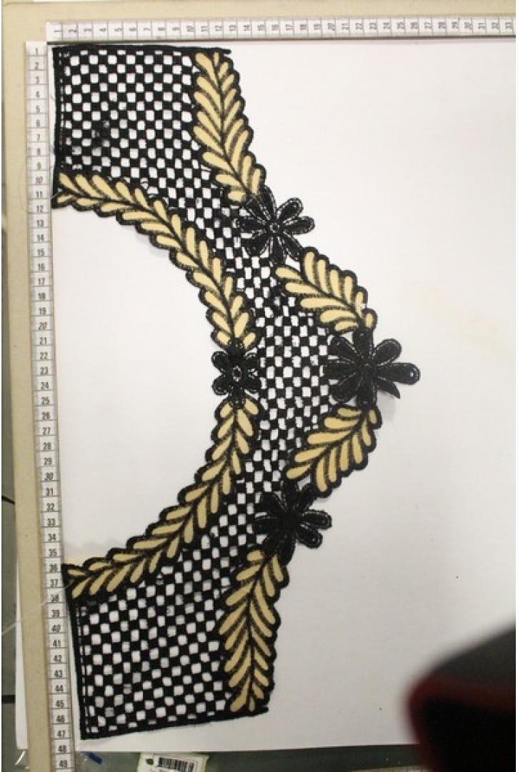 Siyah renkte sakallı yapıya sahip naylon dantel, ithal ve bant olarak dekoratif kullanıma uygundur.-..