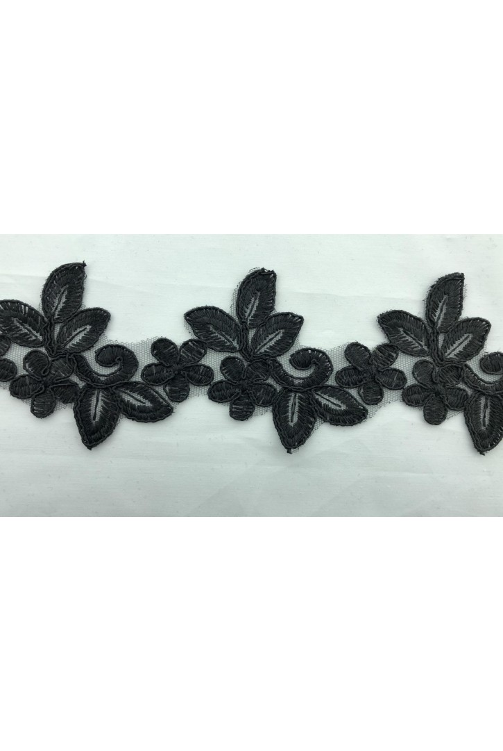 21 cm genişliğinde siyah vual brode bant, dekoratif projelere zarafet katar.-13913 BRODE YERLİ BANT ..