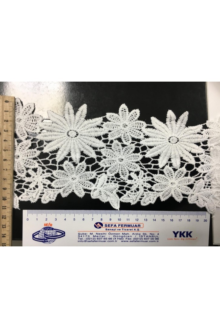 14 cm genişliğinde, ham renkli ve parlak polyester içeriği ile dikkat çeken brode bant.-3987 BRODE Y..