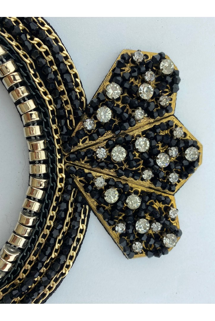 Şık ve zarif bir dokunuş sağlayan, siyah zemin üzerine renkli nakış detaylı ithal vual brode kumaş.-..