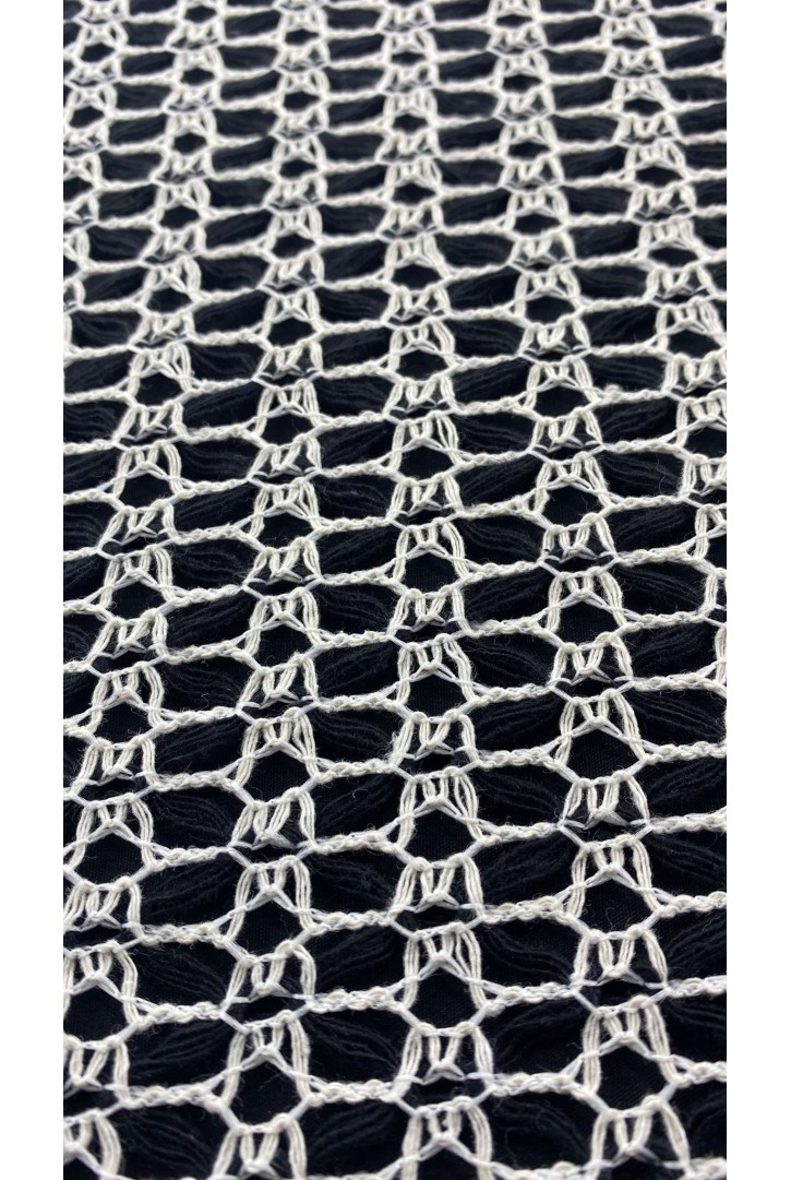 Siyah Zemin Bej İplik Süzeneli Şifon