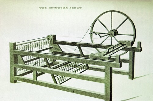 Hargreaves fue uno de los tres hombres responsables de la mecanización del hilado: Richard Arkwright patentó el bastidor de agua en 1769, y Samuel Crompton combinó los dos para crear la mula de hilar en 1779.