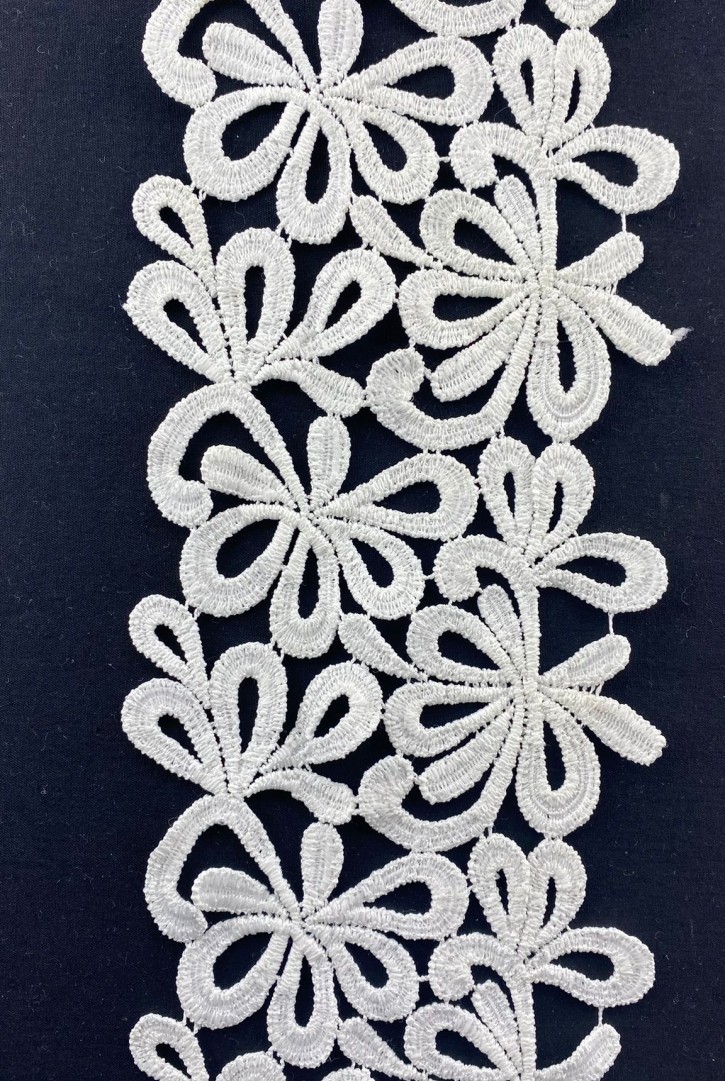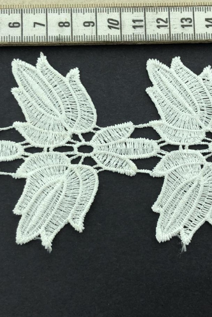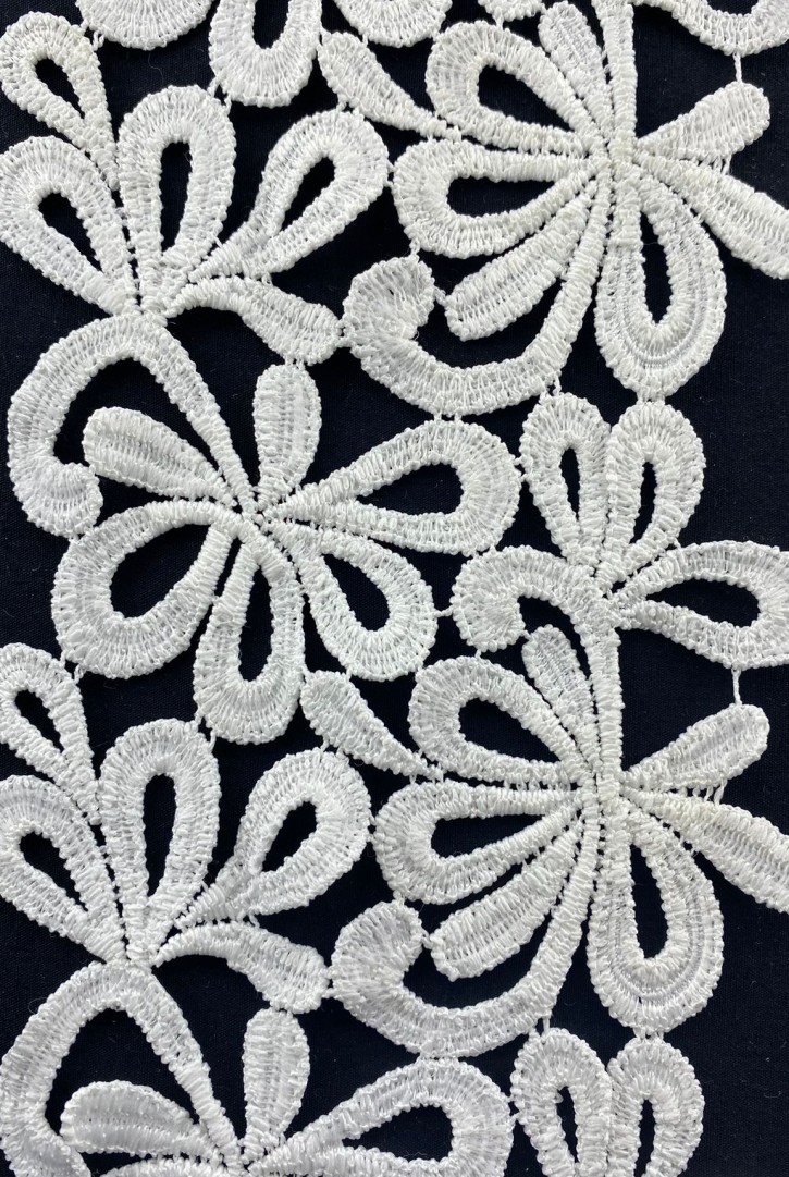 Siyah renkte, 8.5 cm genişliğinde mat polyester ithal güpür brode bant. Şık projeler için zarif bir ..