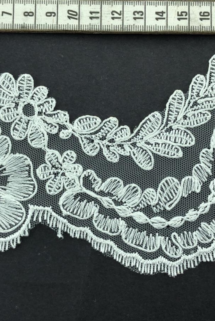 Tül üzerine kasar yapıda mat polyesterden üretilmiş zarif bant...