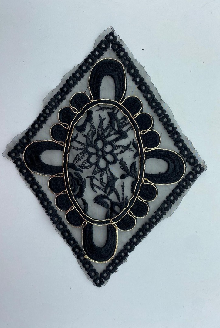 Siyah pamuk aplik, el işçiliği hissi veren detaylarla tasarımlarınıza hareket katar...