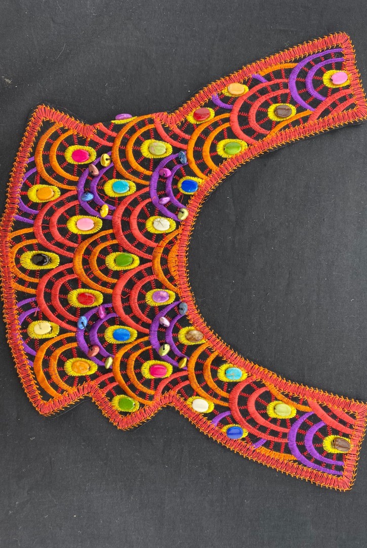 Zarif nakış detaylı kırmızı-yeşil aplik, etamin üzerine işlenmiştir...