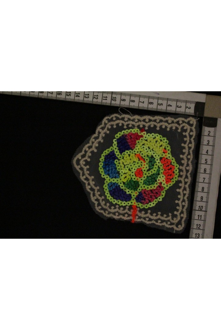 Mor, fuşya, yeşil, sarı ve beyaz renklerde, 10x13 cm ölçülerinde tığ işi akrilik aplik...
