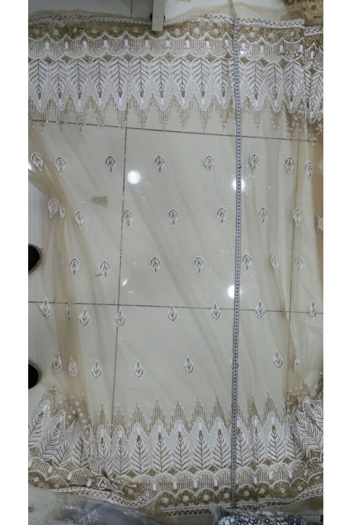 Yumuşak dokulu, kahverengi şifon üzerine işlenmiş pamuk polyester brode kumaş...