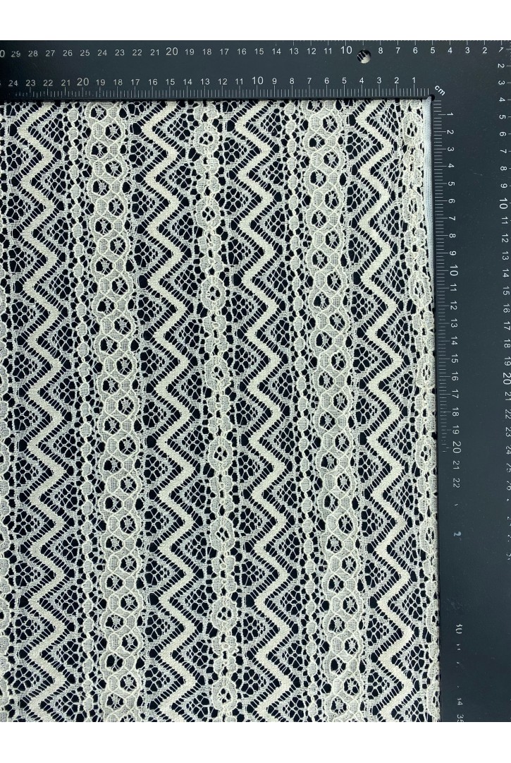 İthal krem pamuk naylon dantel, 125 cm genişliği ve likralı yapısıyla esnektir...