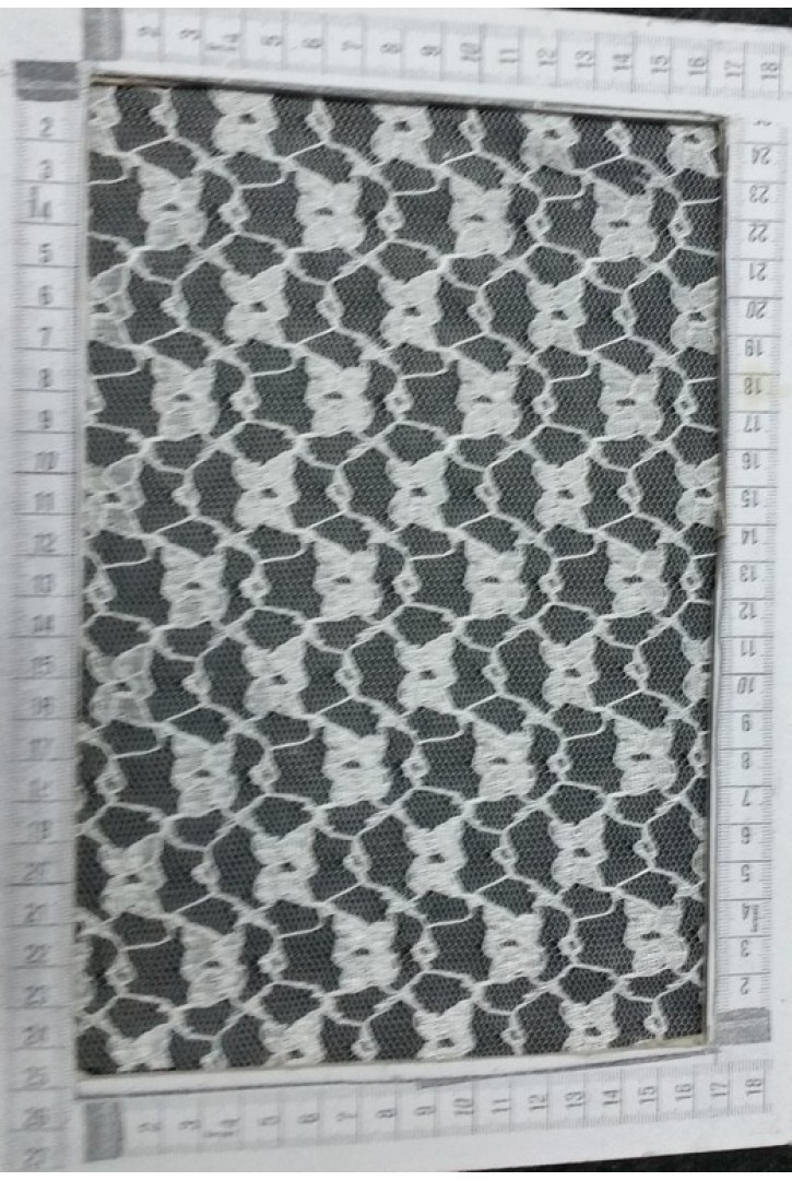 Naylon malzemeden likralı ithal dantel, 140 cm genişliğinde ve fikse işlemli dayanıklı bir yapı suna..