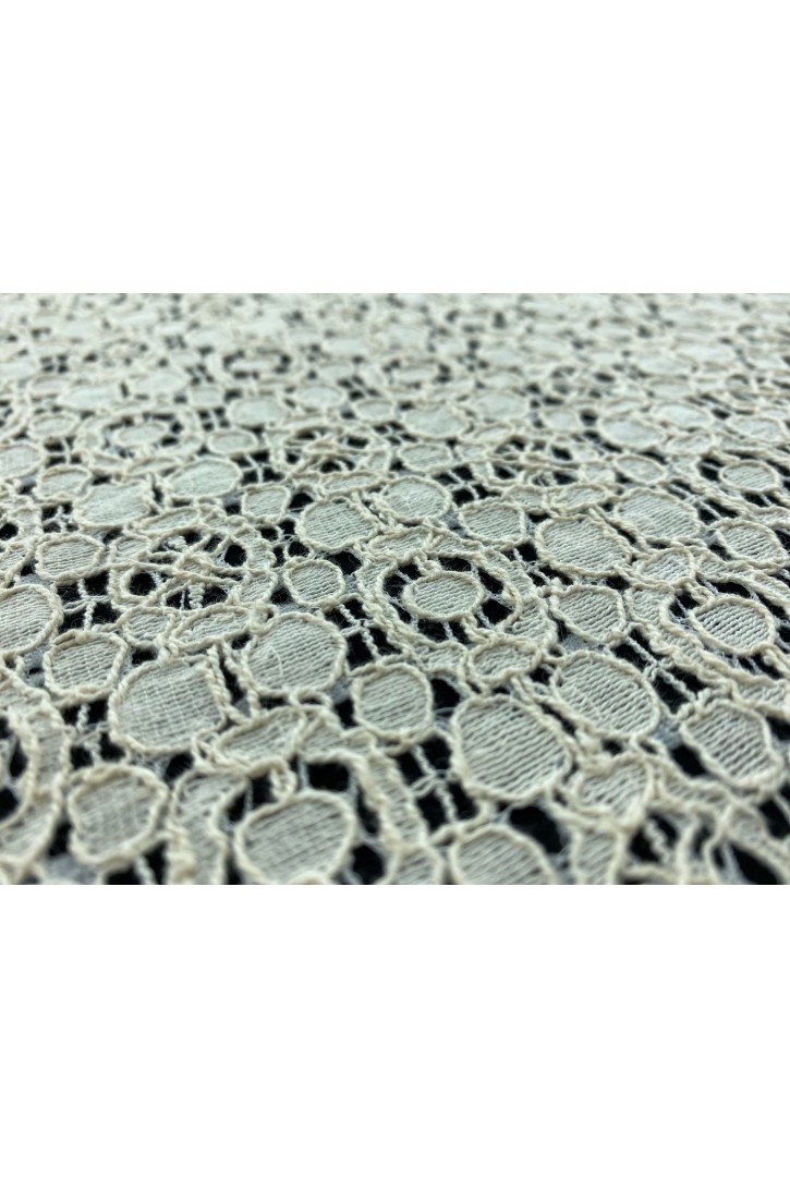 140 cm genişliğinde ham renk yerli polyester dantel, doğal yapısıyla dekoratif projeler için uygundu..