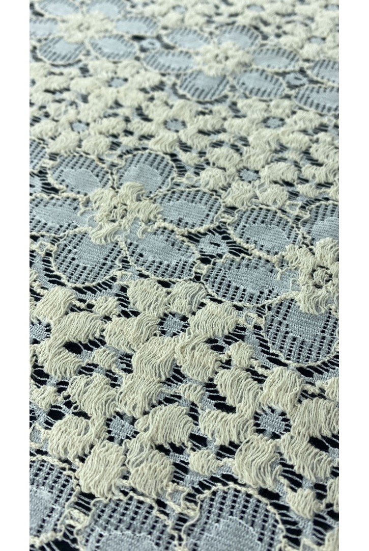 Krem renkte, dayanıklı polyester dantel kumaş. Zarif projeler için idealdir...