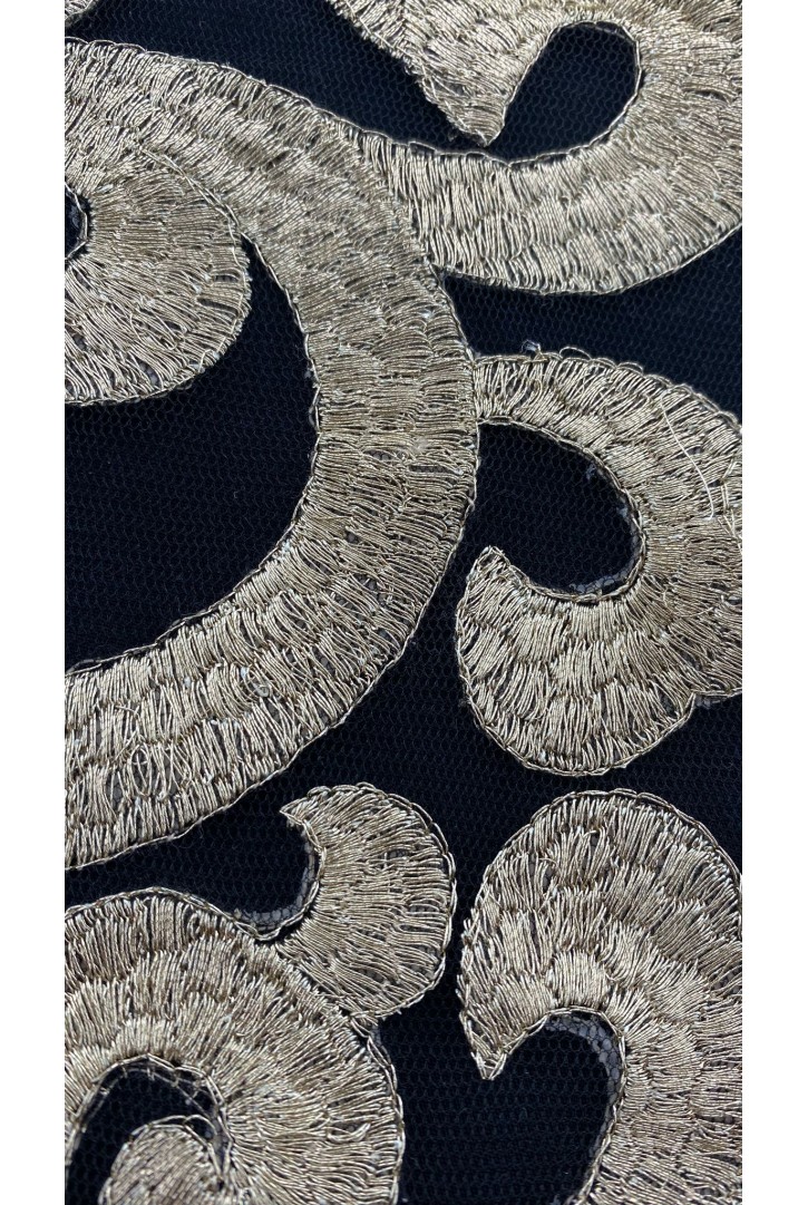 Altın renk pullarla süslenmiş kordlu naylon brode, gösterişli projelere uyum sağlar...