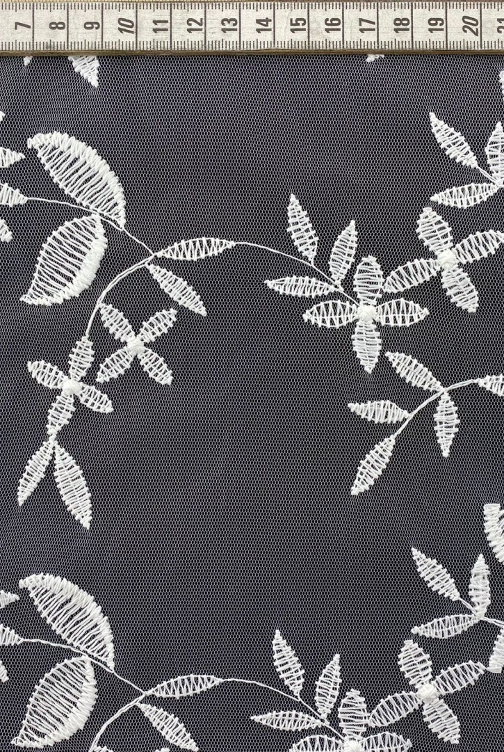 Beyaz nakış detaylı ithal dantel. Zarif projelerde şık bir detay sunar...